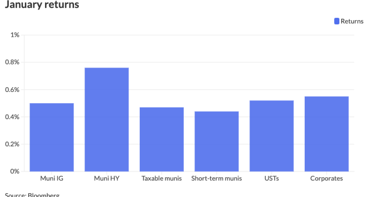 After a rough start to January, munis did a “complete 180” and ended the month in the green, said Jason Wong, vice president of municipals at AmeriVet Securities.